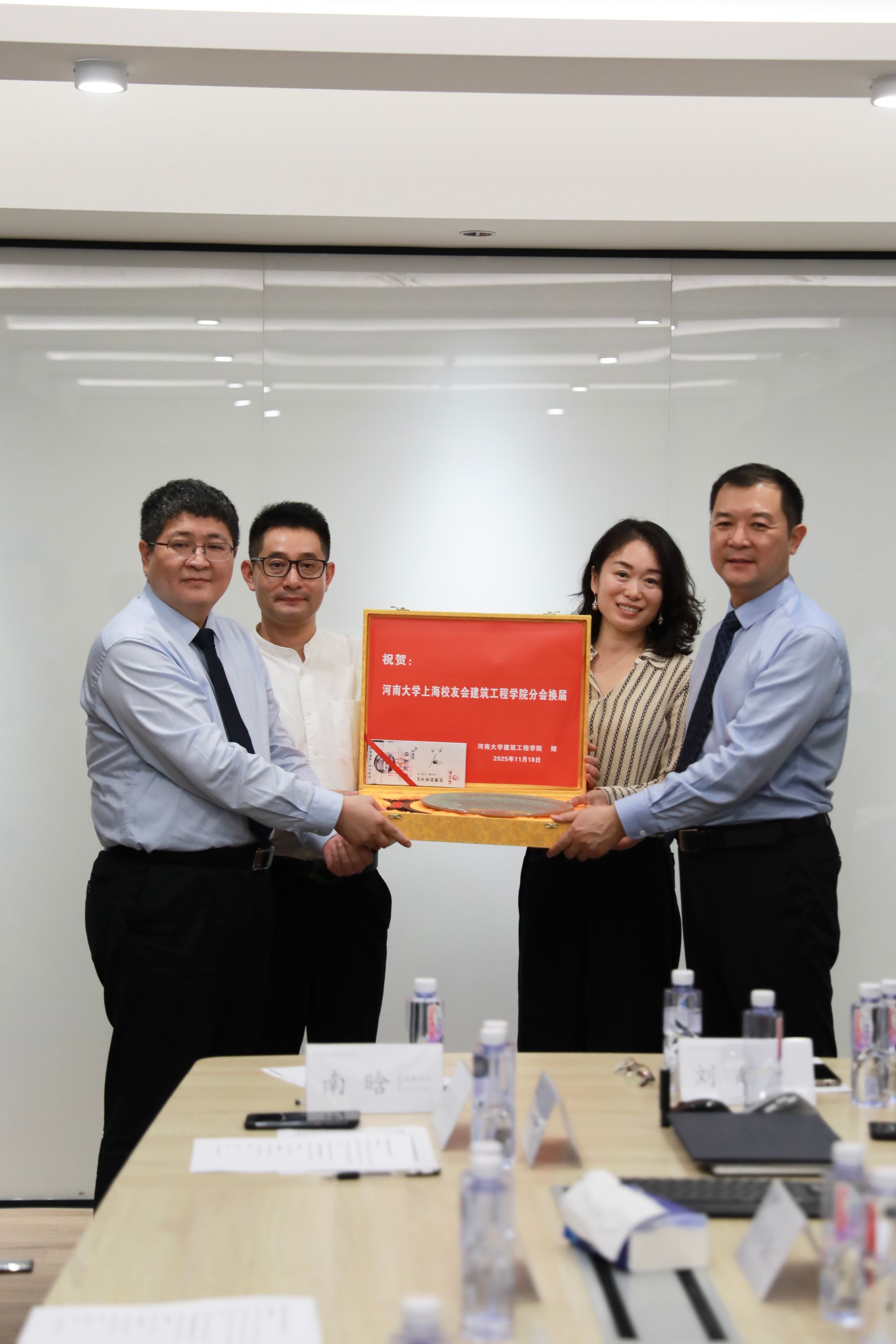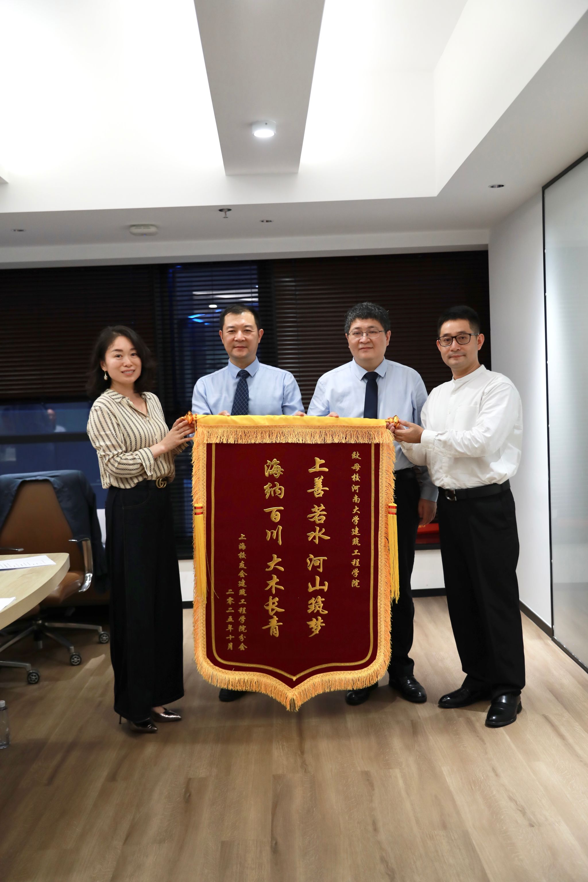 代表回赠了锦旗“上善若水,河山筑梦;海纳百川,大木长青”,以表达上海校友对母校培育之恩的感谢以及对母校未来发展的美好祝愿,体现了校友们饮水思源、情系母校的赤子之心。