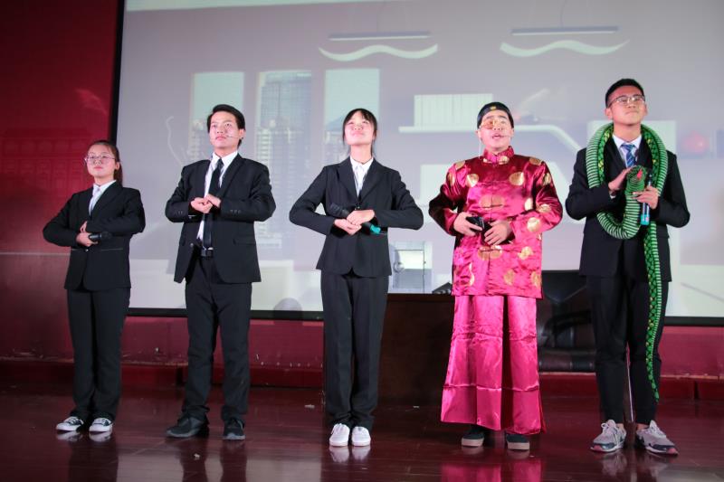 辅导员魏森杰老师特意为大家准备的小品,借助幼儿园教学给大家带来了精彩的一课,三个可爱的小朋友的表现也让现场喝彩不断。在一个个精彩的节目完美的呈现之后,迎新晚会在大家的掌声中落下了帷幕。