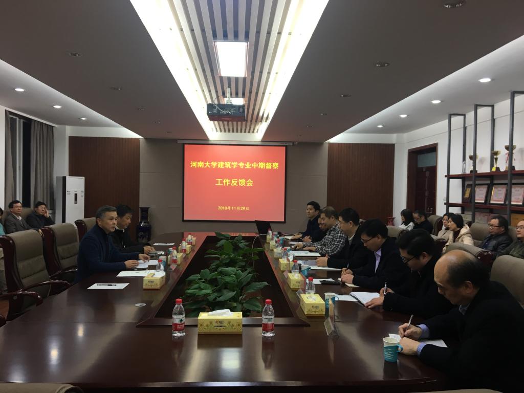 视察结束后,两位专家对视察的情况向学校进行了反馈,河南大学校党委常委、副校长刘志军教授、教务处处长李捷、人事处副处长武相军、财务处副处长魏森淼、后勤处副处长杨振伟等有关职能部门领导参加,反馈会由李捷处长主持,会上,督察组专家对我校建筑学专业两年来的专业建设工作给予了充分肯定,又提出了进一步重视师资队伍建设、加大教学经费投入、增加对外交流、充分利用河南大学老校区近代建筑群资源办学等四条意见。