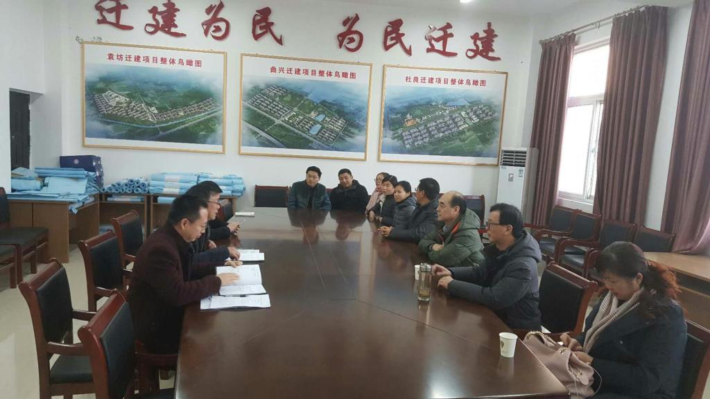 迁建办主任宋昕首先介绍了黄河滩区居民迁建的背景,它是全面贯彻党的十八大和党的十九大精神,深入学习贯彻习近平总书记系列重要讲话精神,认真落实李克强总理考察河南黄河滩区居民迁建时的指示要求的重要体现。其次介绍了迁建项目规模,包含了袁坊乡、杜良乡、曲兴镇等三个安置区,涉及到4296户15388人,项目整体完成时间节点为2018年8月主体封顶,2018年年底完成安置区建设,达到群众入住条件,2019年9月底全面完成旧村复耕工作。最后说明了三个安置区的服务功能及打造的区域特色目标。
