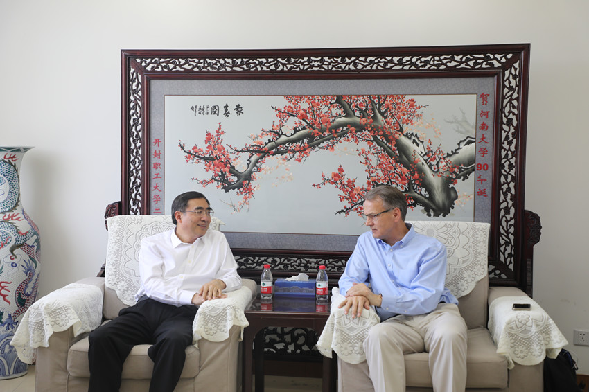 苏磐石对河南大学的热情接待表示感谢,向我校代表介绍了伊利诺伊州立大学“3+2”本硕连读等国际合作交流项目。他表达了对古建筑健康观测的研究兴趣,希望与我校王自法等专家在该领域开展更为深入的合作,同时欢迎更多的河南大学师生到伊利诺伊州立大学香槟分校交流学习,共同为人才培养做出努力。