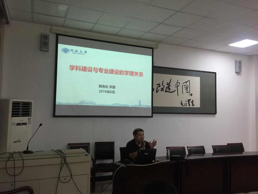河南大学教务处处长李捷教授,以微信小测试的形式导入新时代本科教育背景下我校专业建设聚焦的问题,这种创新性的授课形式和方法让学员们耳目一新, 随后,李处长作了《学科建设和专业建设的学理关系》的报告,并用思维导图清晰明了的阐述学科评估,他还指出,教师在教学过程中要养成终身学习的习惯,不做教书匠。这些问题导向和报告对足球比赛比分