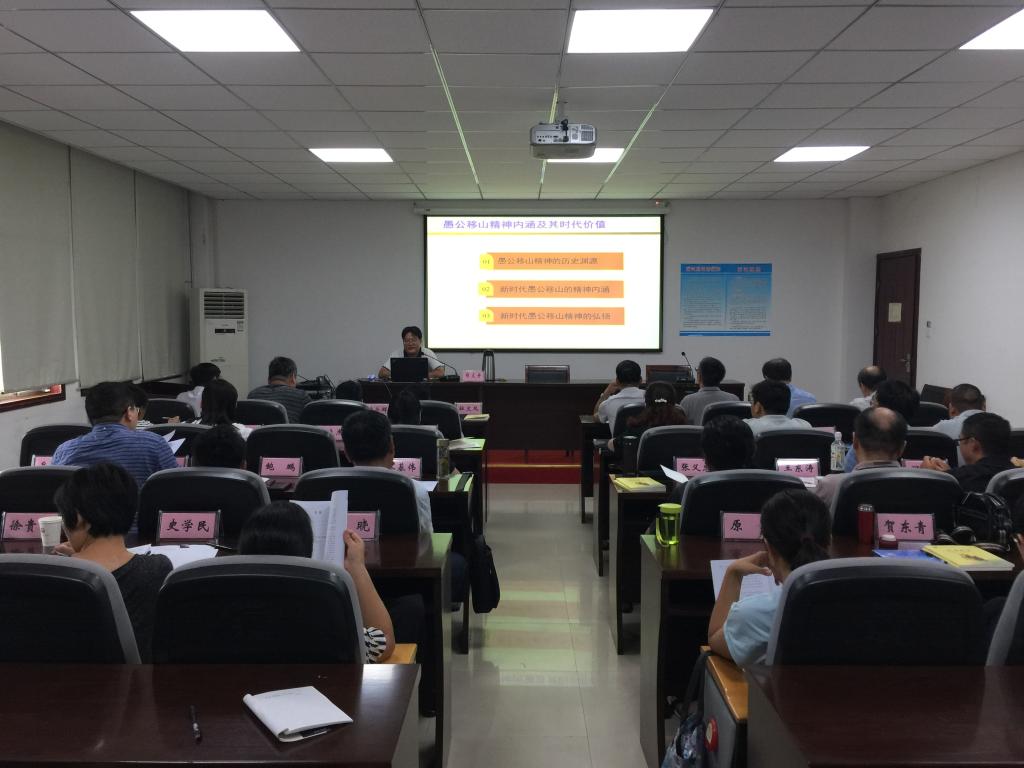 郑太升老师以《愚公移山精神内涵及其时代价值》为题,让与会干部深刻领悟到了敢想敢干,艰苦奋斗,勤劳勇敢,开拓进取,坚忍不拔,自强不息的愚公移山精神内涵,真心体会到了愚公移山精神发扬光大的时代背景。