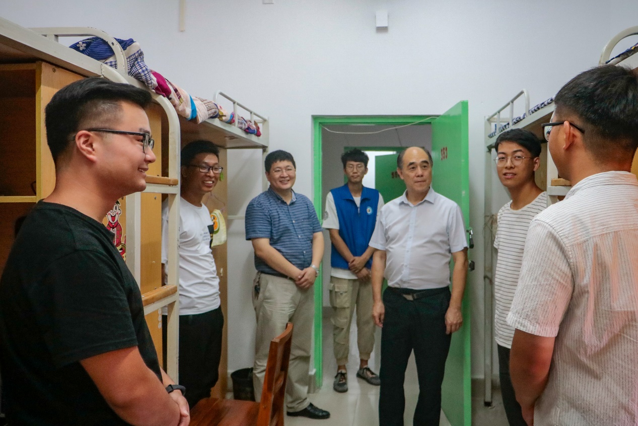 每到一个新生宿舍,李社教书记都会亲切的询问“同学来自哪里”“毕业哪所学校”“生活中有什么困难没有”,在看到宿舍墙壁有脱落的情况时叮嘱学生及时报修,注意安全。走访中,岳建伟院长对学生展开亲切交谈,他强调步入大学也就意味着新生活的开始,同学们要尽快的熟悉并适应现在的生活,和同学搞好关系,并且要注意自己的人身以及财产安全,认真学习,努力奋斗,争做新时代有为青年。在与新生聊天过程中,院领导态度和蔼可亲,学生对足球比赛比分