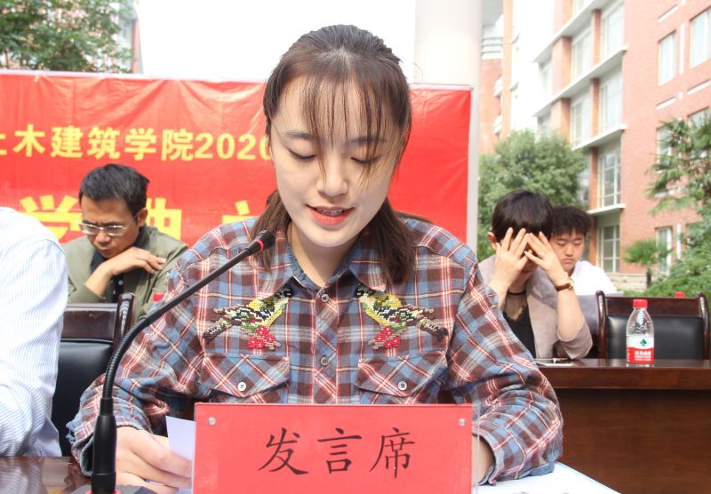 老生代表,2018级城乡规划专业的张苏同学发言。在发言中,她表达了对各位学弟学妹们的期许与祝福。希望他们在新的生活之中确立好自己现阶段的目标,坚定自己的学习态度,努力学习。在注重学习的同时,希望大家能积极地参与到组织中来,成为真正的高素质人才。