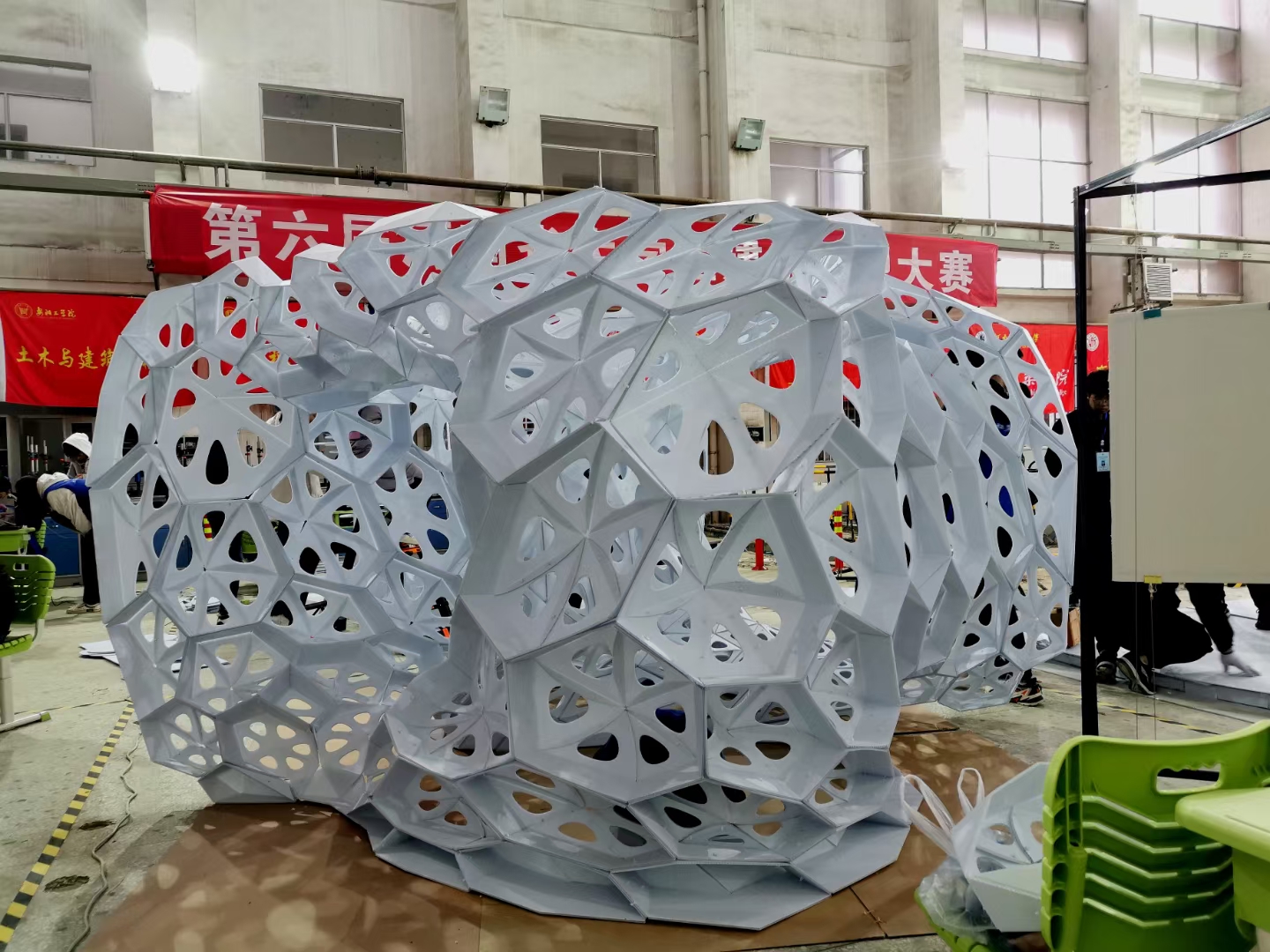 比赛过程中,各支队伍结合设计作品充分展现了各自风采。BIM汇报答辩环节,选手们解析缜密,观点新颖,虚拟展现精彩纷呈;实体模型现场搭建环节,参赛队员齐心协力,环环相扣,向大家呈现了形态优美、意境开阔的模型作品。