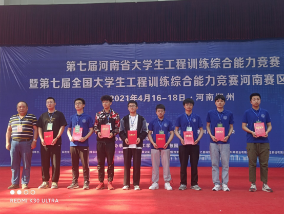 4月18日下午,第七届河南省大学生工程训练综合能力竞赛暨第七届全国大学生工程训练综合能力竞赛河南赛区选拔赛正式落下帷幕。共有全省52支队伍参加比赛,我校八支参赛队伍均获得奖项,其中一支队伍以高分斩获第一名并顺利晋级国赛,三支队伍获得二等奖,有四支队伍获得三等奖。