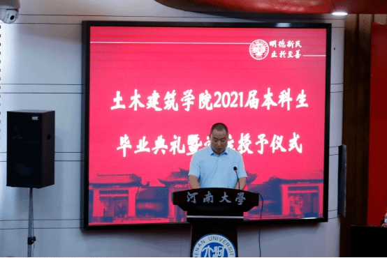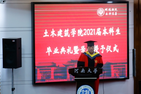 在河南大学金明校区行政楼249举行“2021届本科生毕业典礼暨学位授予仪式”。河南天工建设集团有限公司总工程师姚建林,河南天工建设集团有限公司监事会主席李春青,校友工作与教育发展基金会办公室主任刘波,土木建筑足球比赛比分