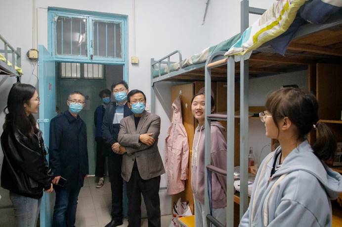 部分老师前往学生公寓,走访、慰问2021级本科生,并为他们送上亲切的问候。