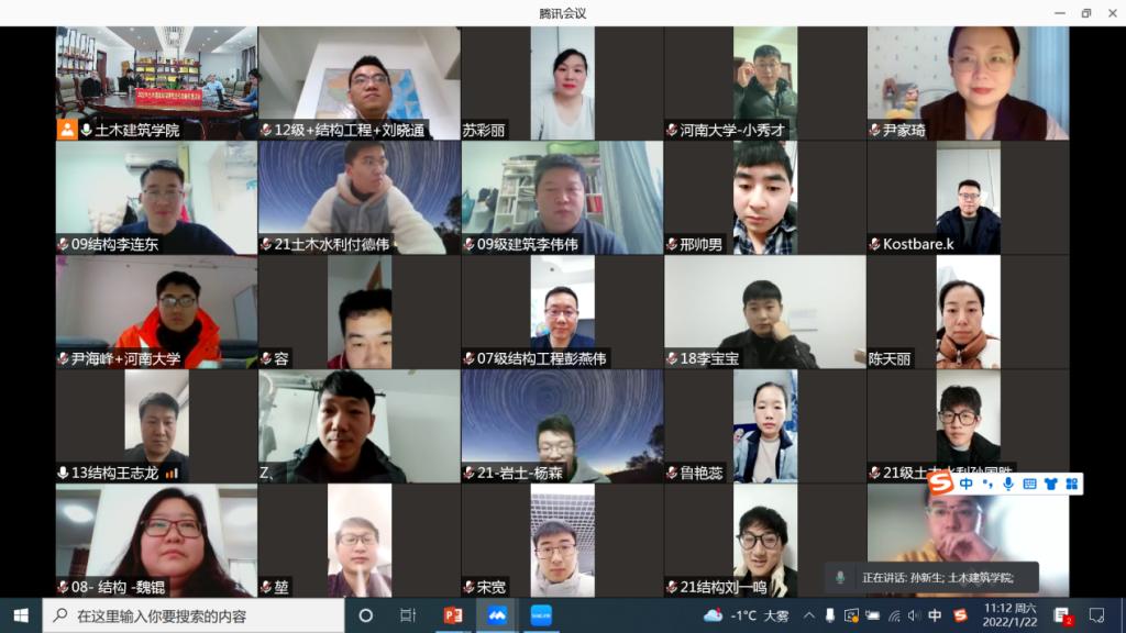 党委书记李社教、院长岳建伟、副院长党玉敬、张大伟、张建伟、原华等全体领导及校友办主任杨卫红在土建院校史馆线下参会,各届研究生校友共计110余人在全省各地线上参会。