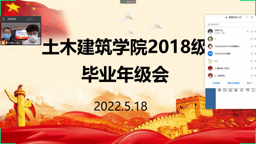 2018级于5月18日、20日召开线上与线下相结合的年级大会,开展了文明离校系列教育活动。