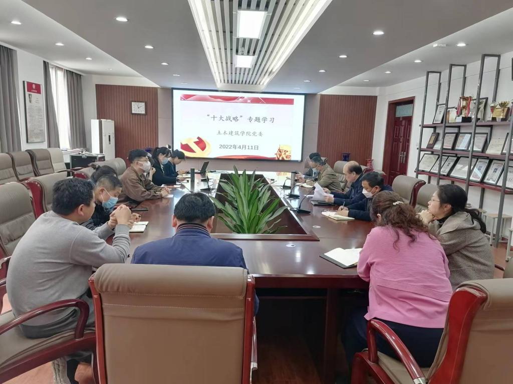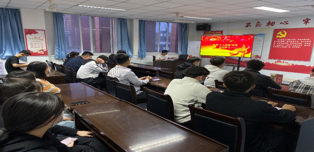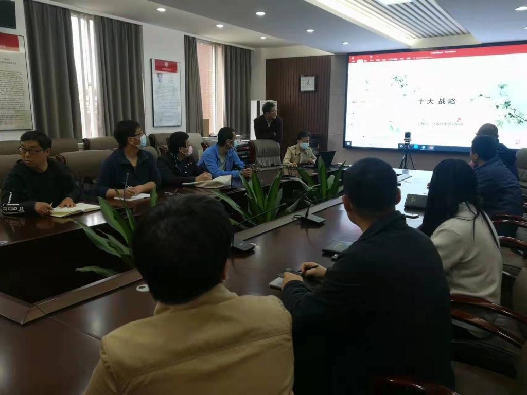 党委组织班子成员、支部书记、行政教辅党支部等党员在204会议室开展十大战略学习动员活动。