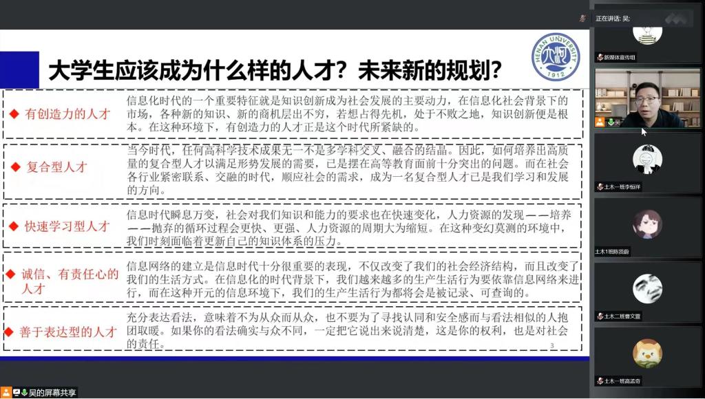 借助腾讯会议平台,顺利开展本科新生专业认知及科研实践教育专题。