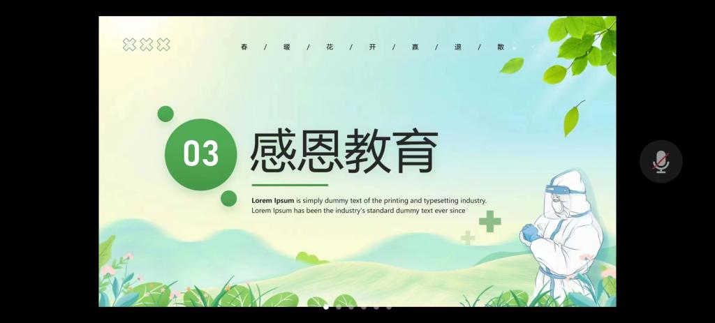 年级团支书就参与抗疫志愿工作分享个人感悟,她向全体同学发出倡议,坚持规范佩戴口罩,养成良好卫生习惯,当好自身健康的第一责任人。年级长安帅奇分享在学校疫情防控中的所见所闻所为,表示应心存感恩,发奋学习。