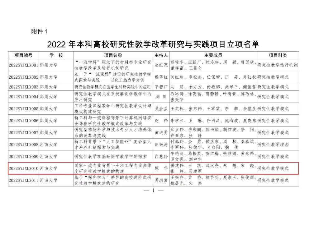 副院长原华主持申报的教改项目“国家一流专业背景下土木工程本科多维度研究性教学模式的构建”成功获批。