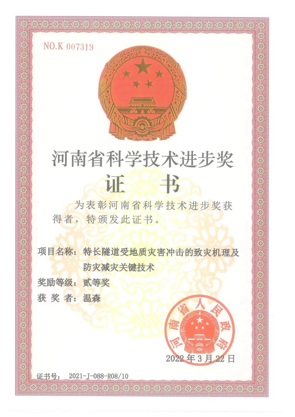 连续五年荣获省级科学技术奖,共计7项,其中二等奖三项,三等奖四项,具体名单如下表: