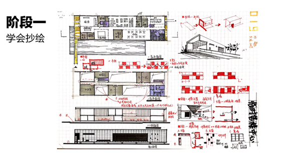 西西学长提出建筑快题设计的的本质还是建筑设计,培养正确的设计观是提升设计能力的根本。只有在上层设计观的统领下,策略、造型、空间、平面之间才能相互印证,进而形成清晰的设计思路。结合建筑类专业同学们目前所处的学习阶段,西西学长给同学们分享了案例抄绘六阶段的学习方法体系:阶段一:学会抄绘;阶段二:学会分类;阶段三:学会提炼;阶段四:学会总结;阶段五:学会思考;阶段六:学会更新。案例抄绘的学习方法体系层次清晰,各个阶段抄绘的内容详细明确,非常易于同学们理解和掌握。最后西西学长还分享了他的抄绘心得:1案例抄绘的最终结果是一张分析图,在脑海中留下的也应是一张分析图。因为这样便于提取。案例抄绘的最终目标是灵活应用,在最终图纸中留下的也是一张分析图。因为这样便于思考。2抄绘的过程是浓缩精华的过程,浓缩成各种“口味”的精华,遇到不同的水和人它便变成不同的“饮品”。每个案例都各有所长,我们也要各取所需。3不要急于求成,相信时间的力量。通过自身的经历和经验来帮助同学们在专业课的学习中快速成长,少走弯路。