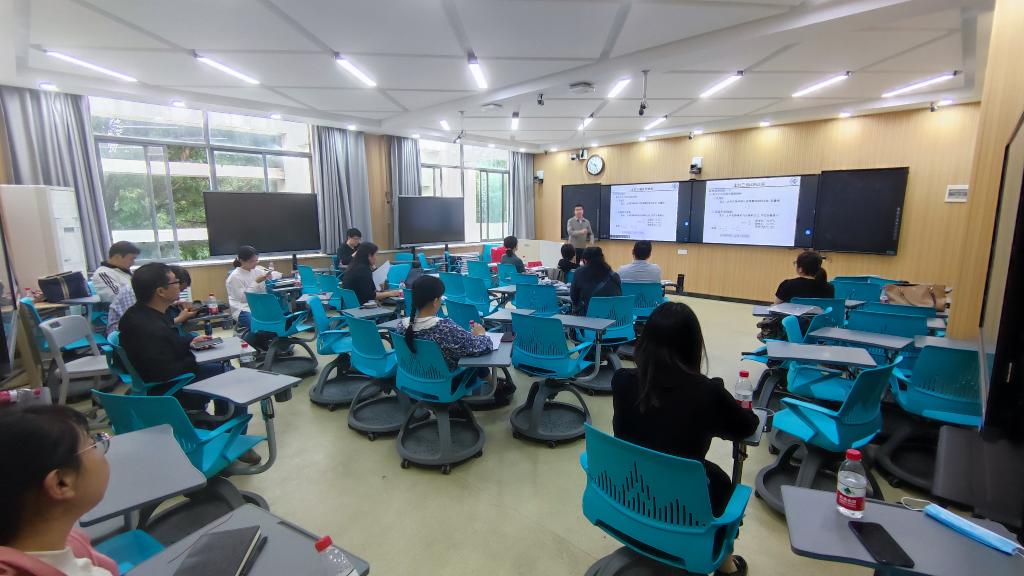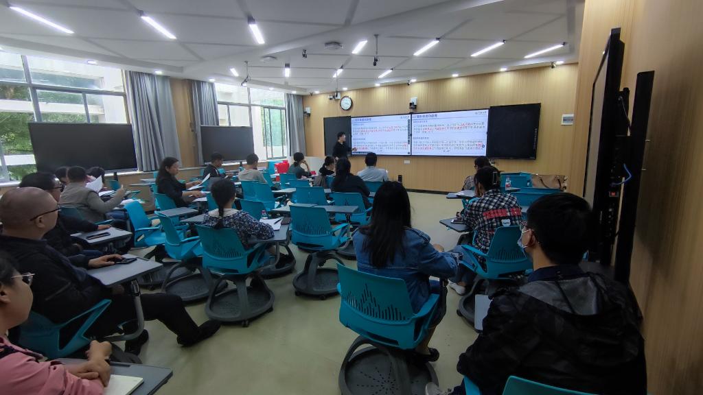 之后,比赛正式开始。此次比赛包括5分钟的说课、20分钟的模拟授课和评委提问点评三个环节。比赛中,四位参赛教师结合自身优势,通过精美的PPT展示和巧妙的教学设计,体现了他们立德树人的教学理念和深厚的专业素养。
