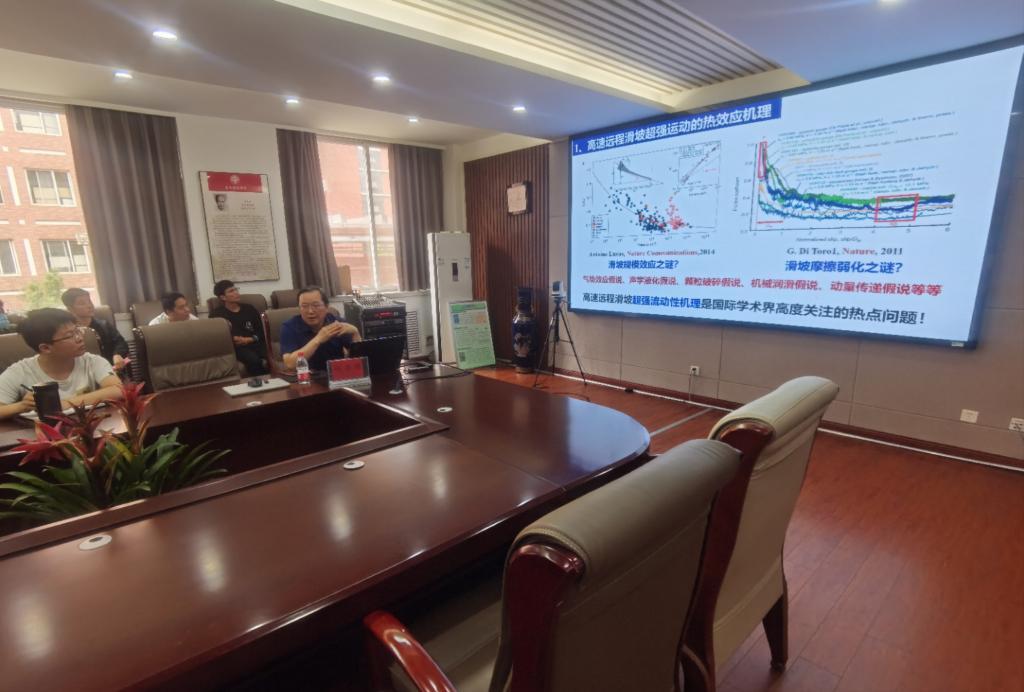 何思明研究员报告的题目为《地质灾害动力学:机制、模型与预测》。何思明研究员分别从高速远程滑坡超强运动机理、物理模型与模拟;链式动力学机制、物理模型与数值模拟平台;山区小流域山洪泥石流灾害精细化数值预报;基于地震信号的地质灾害监测与参数反演;基于声学系统的小流域输沙监测与反演;地球物理信号在防灾减灾领域中的应用前景,六个方面详细介绍了地质灾害动力学的发展前言。报告结束后,何思明研究员就地质灾害研究的发展趋势与足球比赛比分