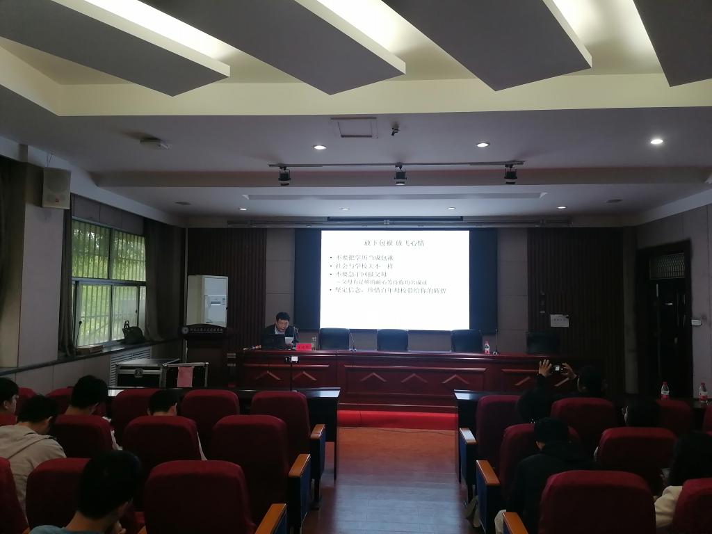 党委副书记赵艳忠向毕业生传达了学校关于毕业生离校的通知安排,希望同学们合理的表达毕业不舍的情谊,注意人身安全、财产安全、交通安全,自觉遵守校规校纪,并要求学生干部站好最后一班岗,积极服务同学。