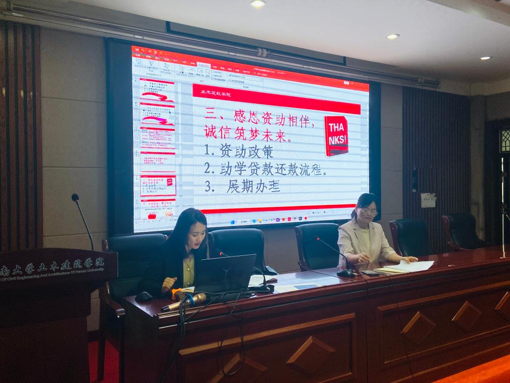 助学贷款负责人李杨老师向毕业生介绍了国家助学贷款资助政策、助学贷款还款流程以及录取研究生同学的展期办理,讲明了诚信还款的重要性,要求毕业生遵守贷款合同承诺,按期还款,用诚信筑牢人生之基。