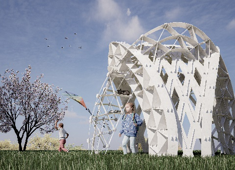 该比赛要求参赛选手具备扎实的专业知识、较强的造型能力、设计创新能力、结构创新能力的同时,还需要对实际建造技术有一定的了解,以实现将三维模型落地为实际建造作品。参赛队伍需要在一天时间内调动8人队伍完成复杂形态的搭建工作,因此这也是一个锻炼学生组织调度能力、临场应变能力和各项实践技能的机会。自本届大赛启动以来,同学们积极参赛,指导老师和队员多次召开组会进行题目分析、内容研讨以及设计制造缩尺模型,多次遴选,最终从7支提交作品的参赛队伍中精选2支队伍,并在决赛前进行1:1全尺寸模型试搭建。周密的准备得到回报,两支参赛队伍均获佳绩。