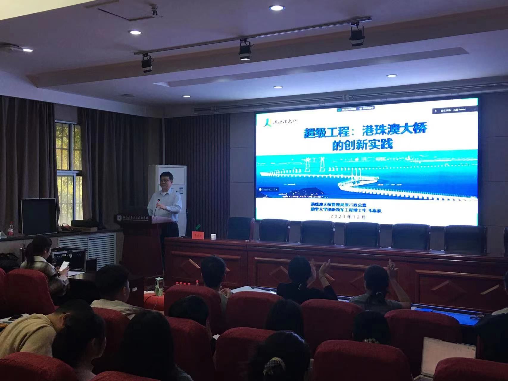 土木工程专业高年级本科生、研究生及部分教师到现场参加了报告会,报告同时以线上方式向工程管理专业研究生直播,报告会由副院长原华主持。