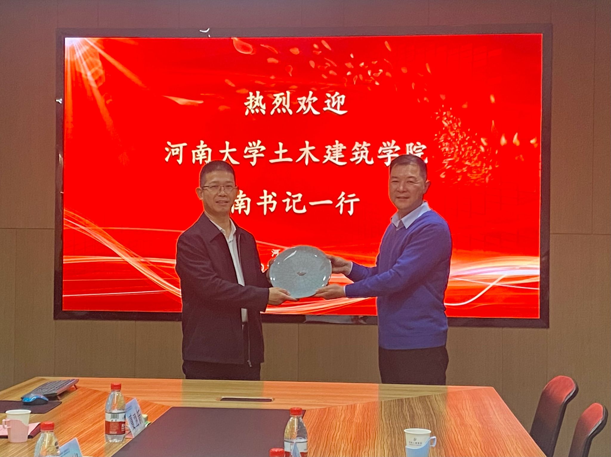 党委书记南晗、正处级组织员李社教、副院长李锋、院办王永锋、校友办杨卫红等走访爱心企业河南省第二建设集团有限公司。