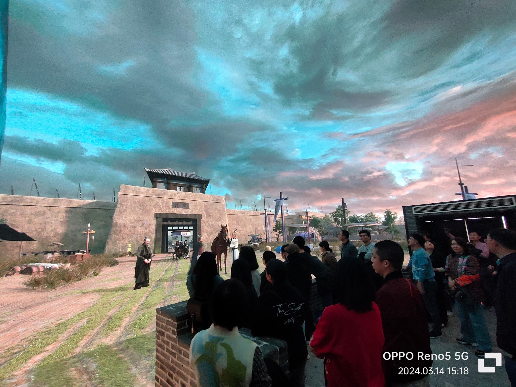 来到大梁门城楼,大家欣赏了3D全沉浸式演出《微梦大梁门》,身临其境地体验了八朝古都开封城的盛世繁华、历史兴衰与文化底蕴。从战国大梁城到唐代汴州城,从北宋东京城到当代开封城,两千多年的历史中,开封这座古城几经劫难,数次被洪水淹没,被泥沙掩埋。但一代代开封人凭借百折不挠的意志、不畏艰险的勇气、战天斗地的气魄,一次又一次在遗址上重建古城、创造辉煌,令人惊叹不已。