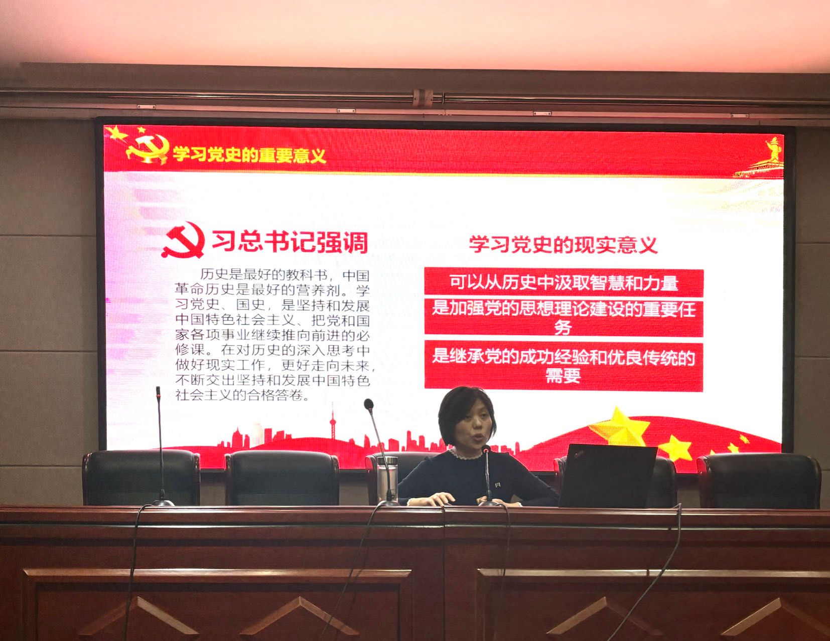 南晗为学员们进行了题为“以中国式现代化推进中华民族伟大复兴——党的二十大精神学习解析”专题党课。他详细解读了党的二十大精神,认真分析了马克思主义中国化时代化的重要性以及新时代新阶段党,并结合实例阐述了构建新发展格局、推动经济高质量发展的战略部署和今后国家的中心任务。