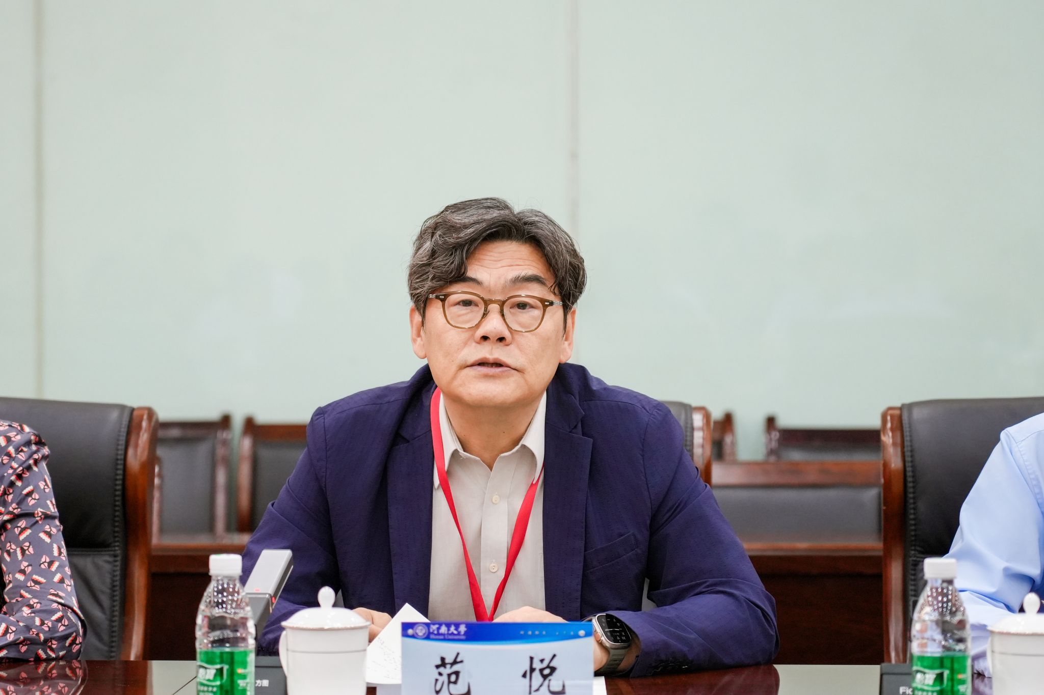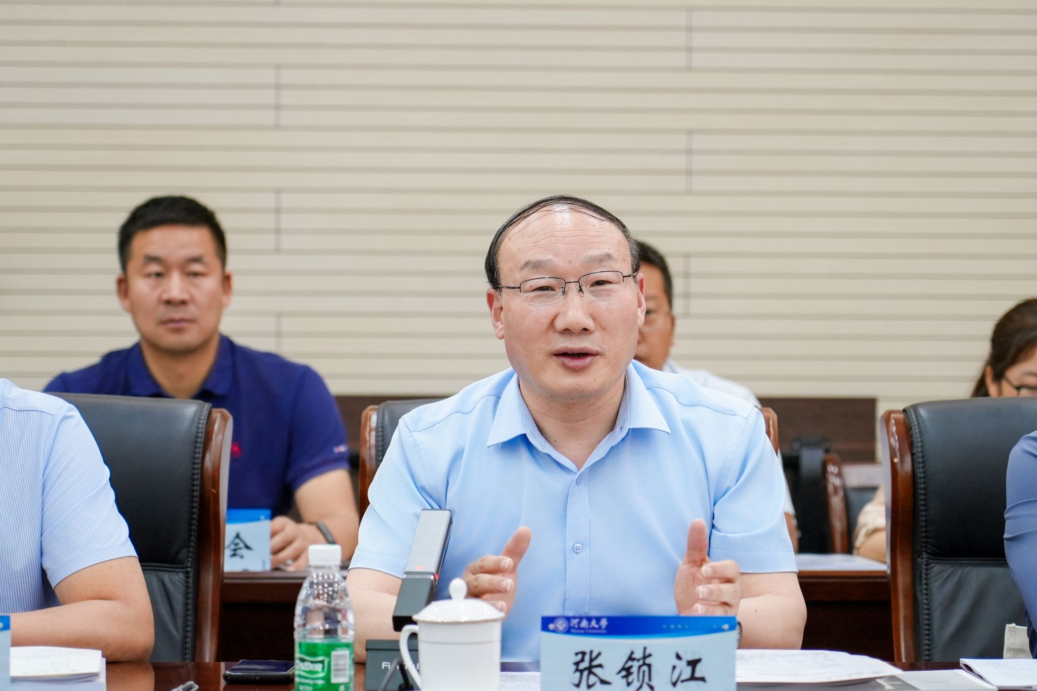 张锁江代表学校对专家组莅校评估指导表示欢迎和感谢,并介绍了河南大学112年历史沿革、“双一流”“双航母”建设现状与学校未来规划布局、土木建筑足球比赛比分