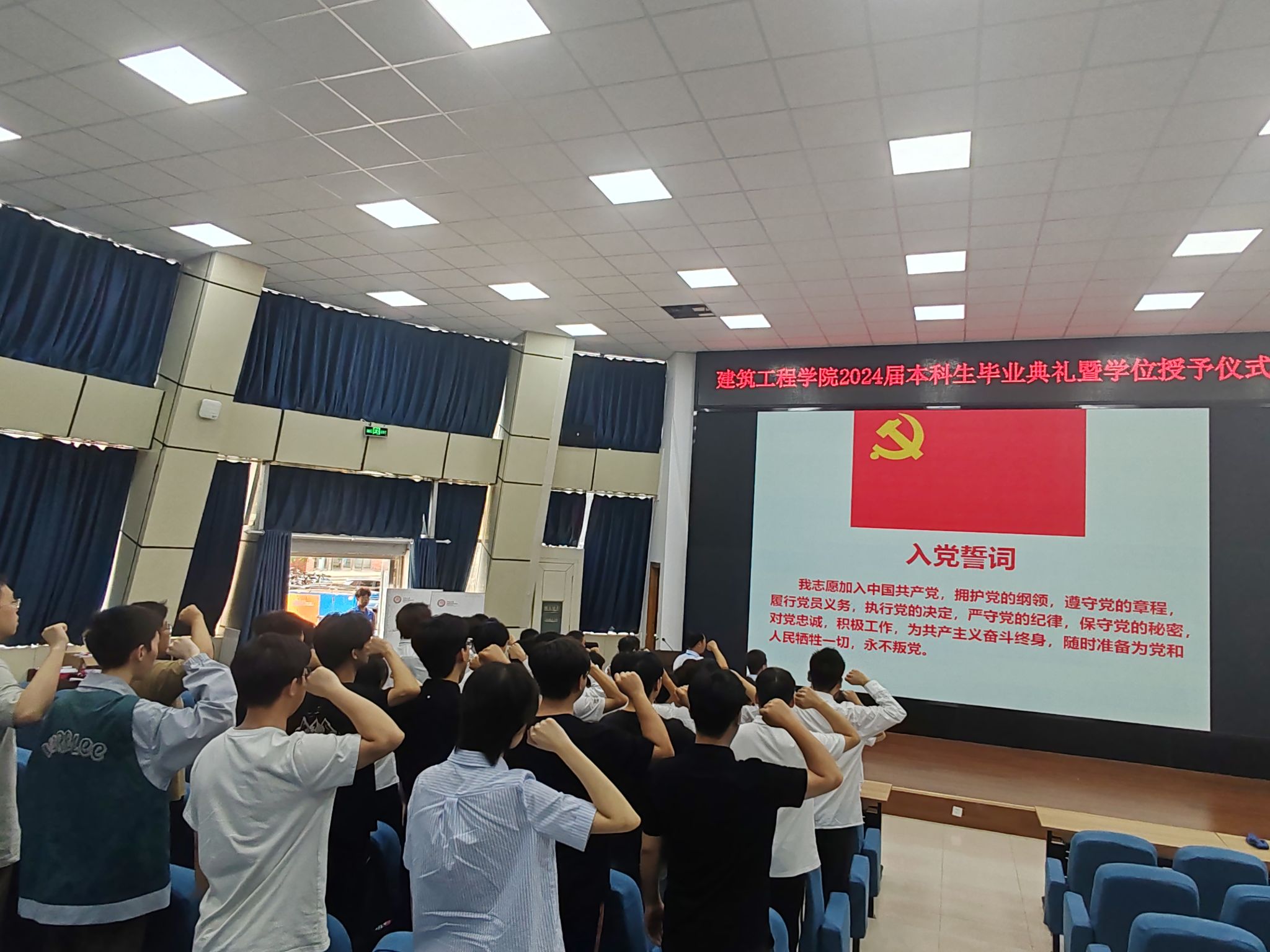 全体班子成员和毕业生党员面向党旗庄严宣誓,重温入党誓词。党员同志们将初心牢记心中,将使命担在肩上,心怀坚定的理想信念,开启新的征程。