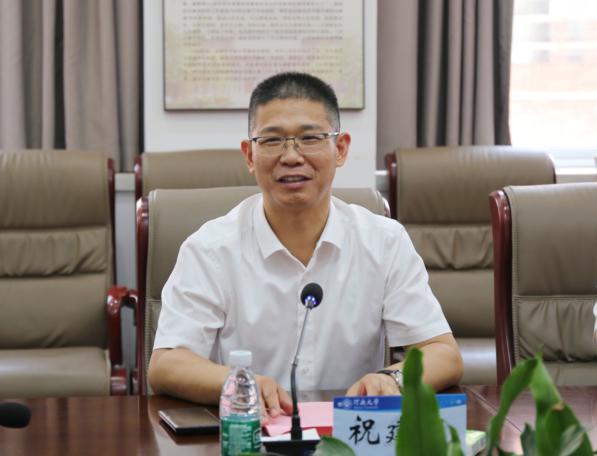 1994级校友、河南省第二建设集团有限公司董事长祝建明,副总经理燕中,总工程师、人力资源总监苏群山, 总经理助理、办公室主任张岚, 河南大学校友工作与教育发展基金会办公室副主任骆春丽,足球比赛比分