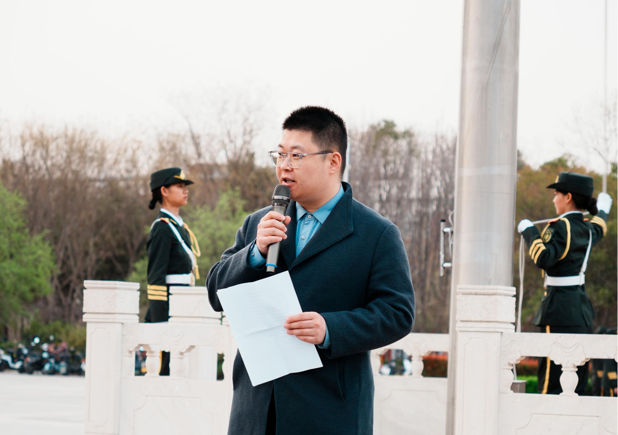 随后,宿云龙以“践行爱国主义,做铁塔牌学子”为主题进行国旗下演讲。他结合自己的学习生活经历与当前国内外形势,告诉大家现在幸福生活是党领导全国人民筚路蓝缕、浴血奋战、艰苦奋斗、改革创新的成果,希望同学们珍惜勤奋拼搏的少年之心,守住崇高远大的少年之志,弘扬“自信、拼搏、开放、创新”的新河大精神,自强不息、锐意进取,肩负起中华民族伟大复兴的使命与责任。