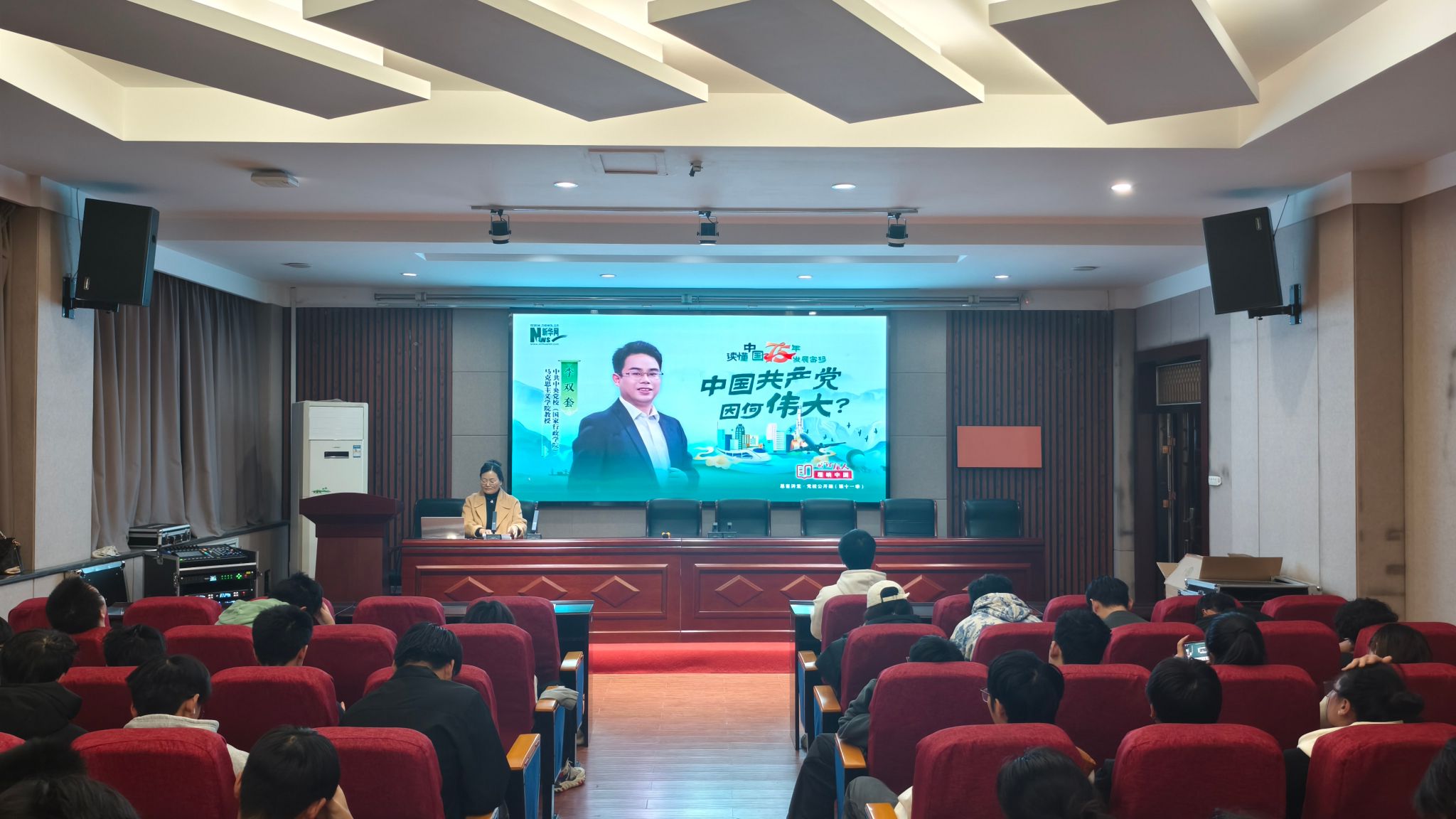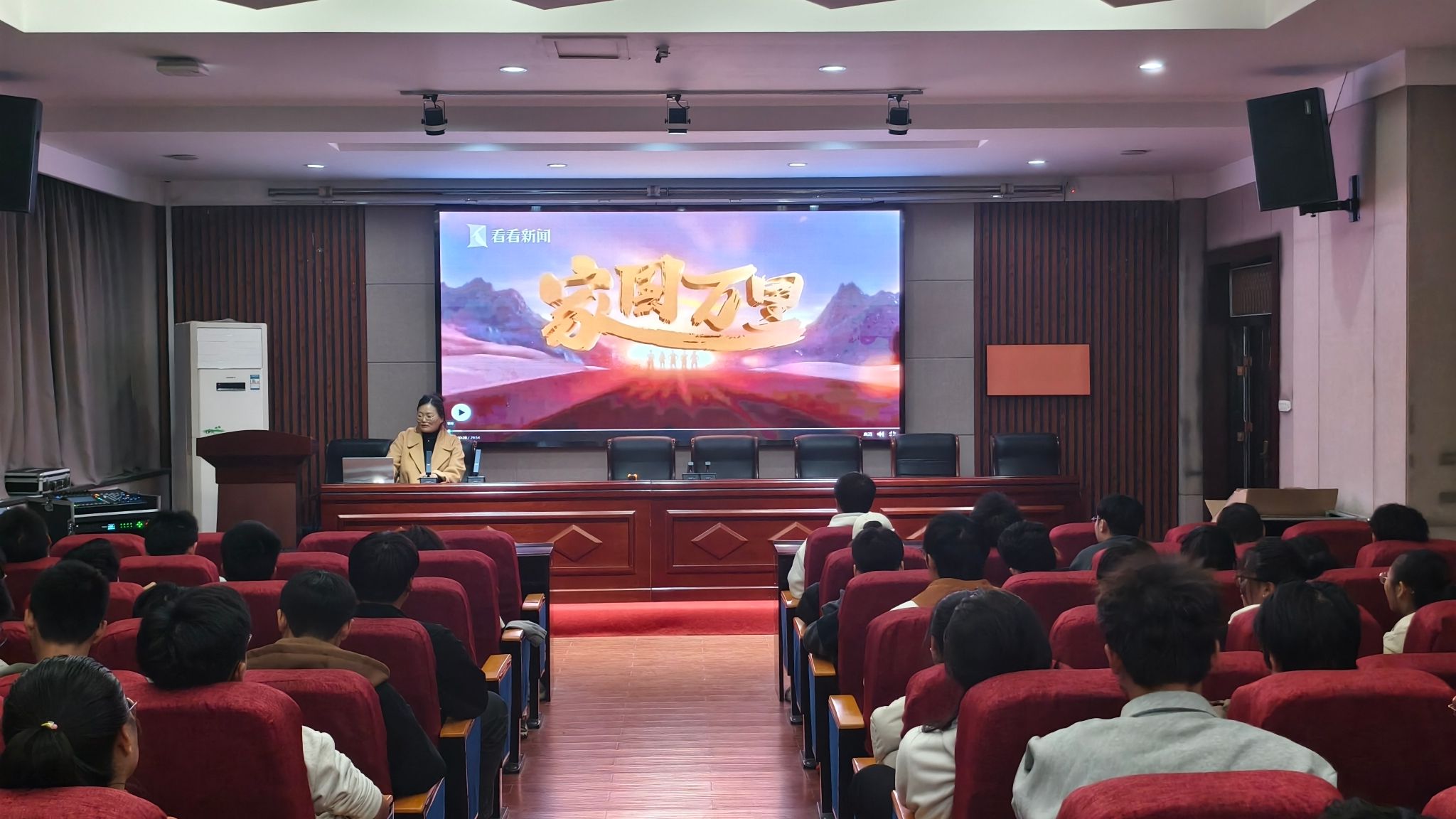 随后,魏老师带领大家一同学习“党的二十届三中全会精神培训课程”,并观看了纪录短片《家国万里 向新而生》《读懂中国75年发展密码》,鼓励同学们立报国强国大志向、做挺膺担当奋斗者。