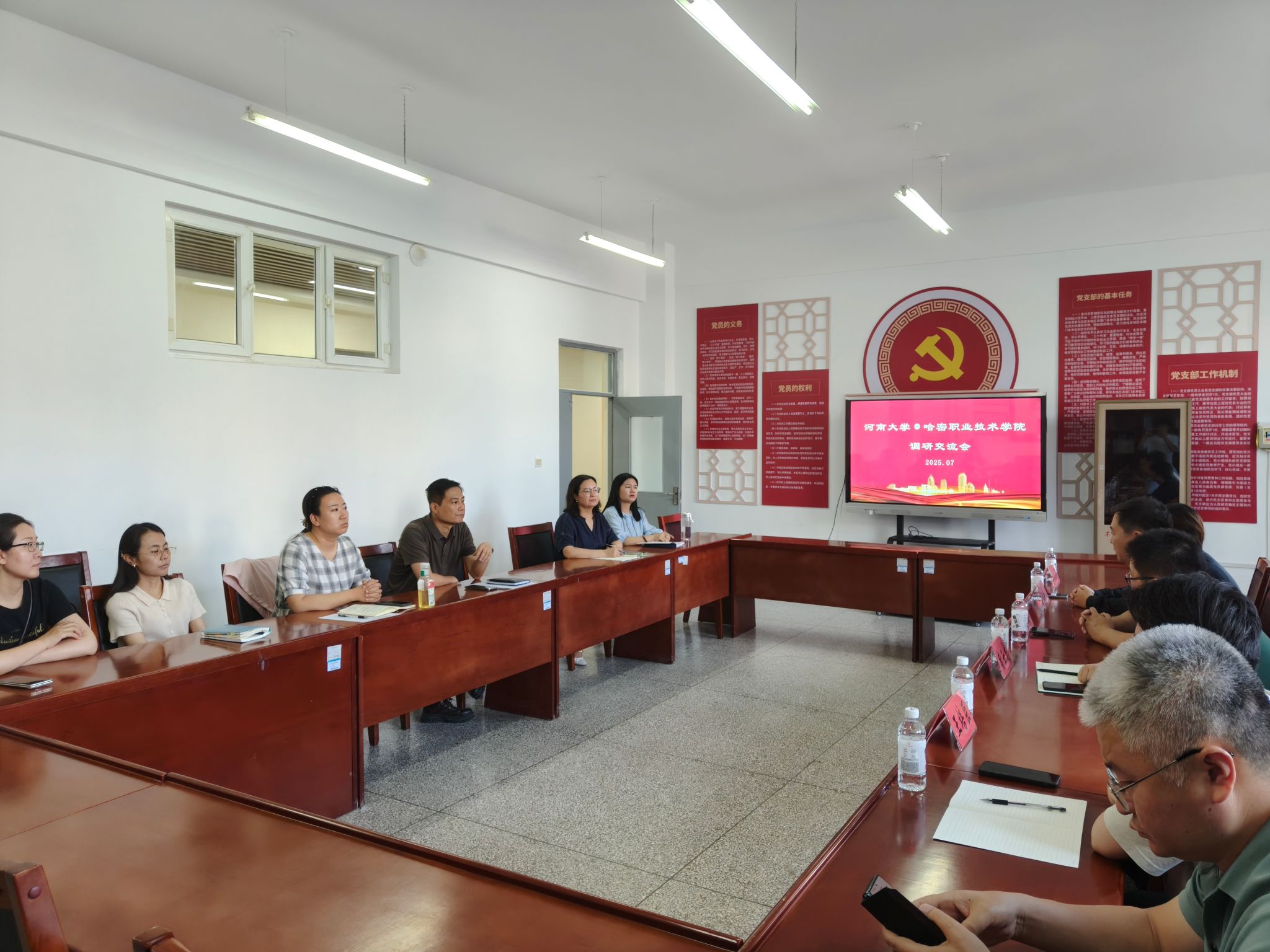 下午,实践团前往哈密职业技术足球比赛比分 调研交流并参观了足球比赛比分 思政教育工作平台。双方围绕新疆与河南两地高校在民族宗教工作、学生管理与服务、思想政治教育、一站式社区建设等方面展开了深入交流并分享了宝贵经验。