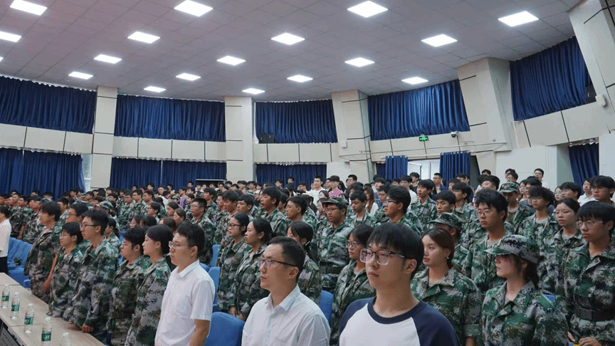 典礼伊始,全体人员起立脱帽,奏唱中华人民共和国国歌。激昂的旋律点燃了现场师生的爱国情怀。