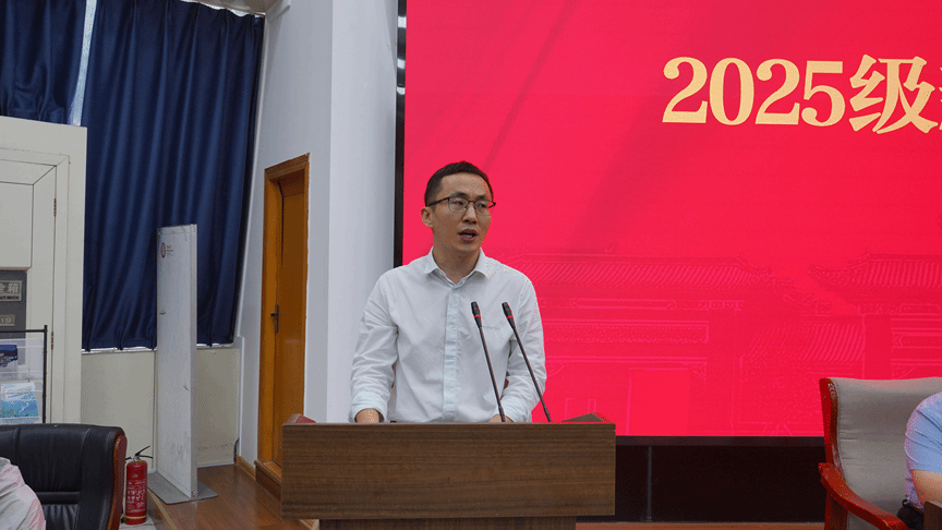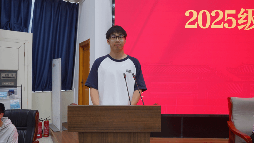 在校生代表、2024级土木水利专业硕士研究生杨孟彪分享自己的成长经验。他从锚定方向、勤学善思、保持热情、融入集体四个方面,为新生提供切实可行的学习与生活建议,传递建工学子互助共进的优良传统。