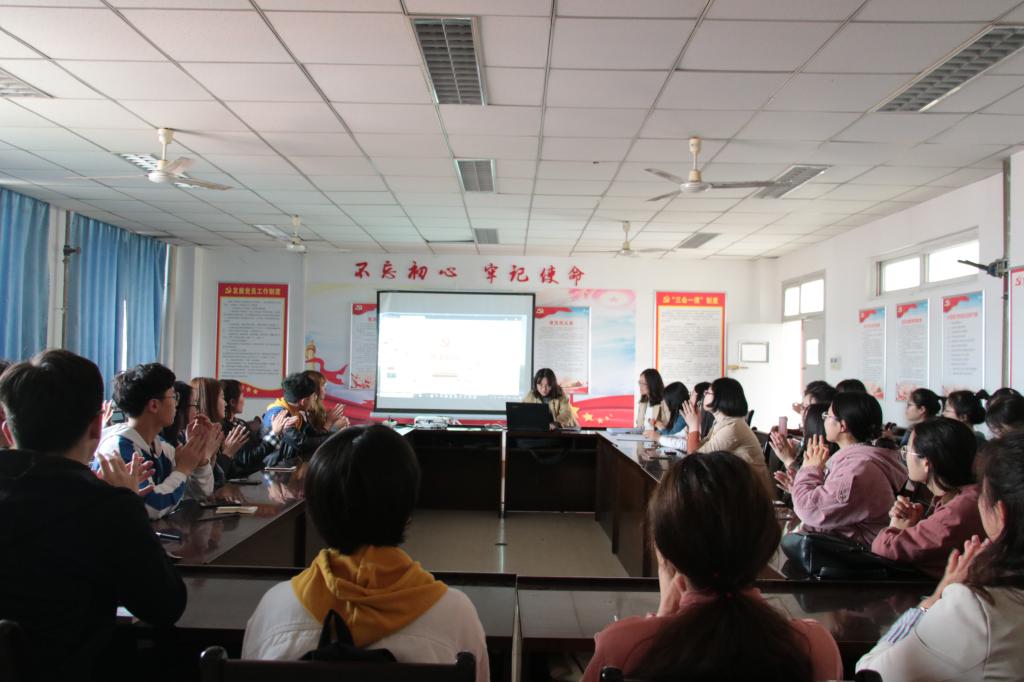 支部书记魏森杰老师对知识竞答的优胜小组进行表彰,对在座青年党员提出要有远大理想、热爱祖国、发扬“五四精神”,争做时代先锋的要求。