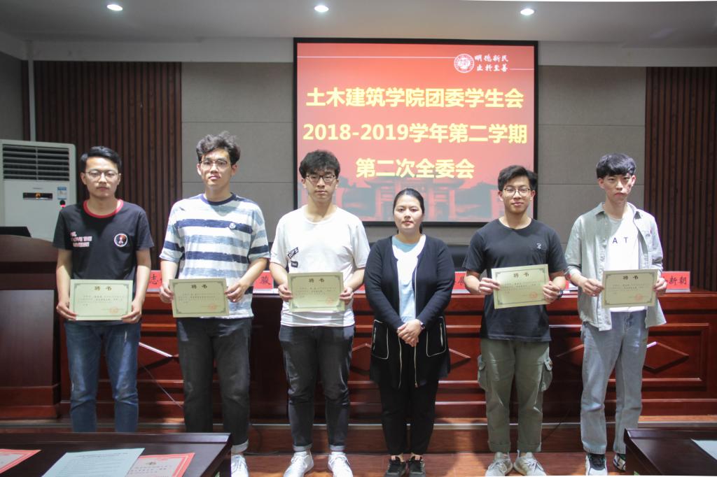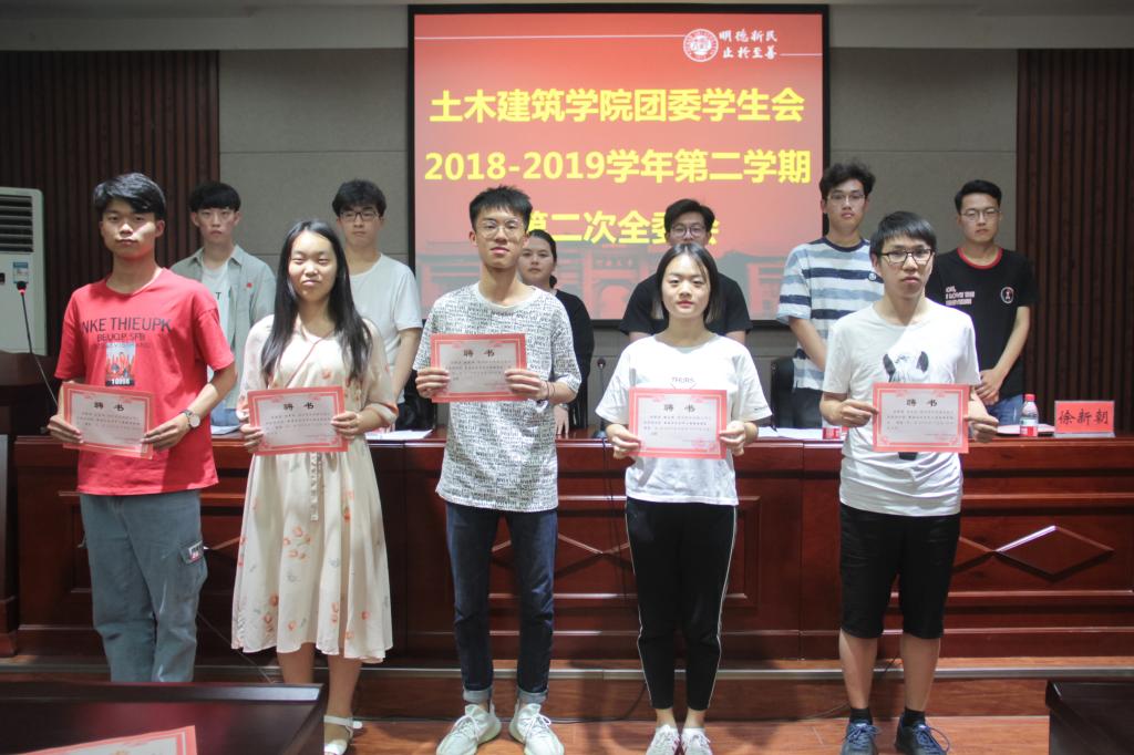 主席团和部长层名单,并由团委负责人徐贵香、学生会主席团为部长层成员颁发聘书。在各个部门部长依次对本年度工作进行总结后,主席团成员依次发表了讲话。他们告诫同学们要不忘初心、各司其职、尊重成果。团委学生会主席谭骏在总结陈词中强调大家要平衡学习和工作的关系,在搞好学习的同时提升工作效率。
