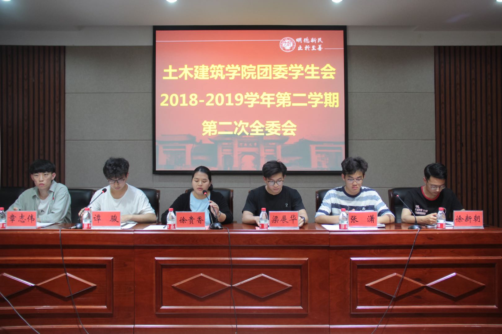 结构实验室二楼报告厅召开了2018-2019学年第二次全委会,团委负责人徐贵香老师及学生会全体成员参加了会议,会议由学生会主席谭骏主持。