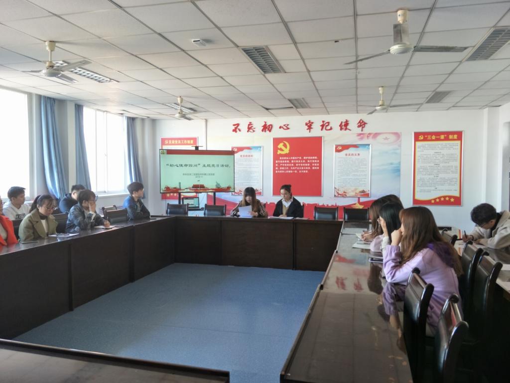 支部委员胡星晨同志组织党员围绕“入党初心是什么、党员使命担什么、对照先进差什么、立足本职做什么”开展讨论,交流发言,谈认识体会。