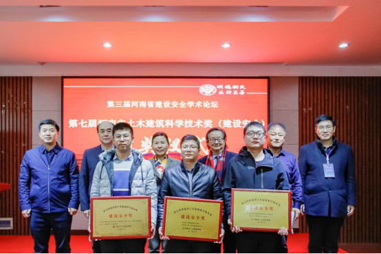 After that, the 7th Henan civil engineering construction science and Technology Award (construction safety) ceremony was held, and the award-winning representatives of each project went on stage to receive the award and took a group photo as a memento.