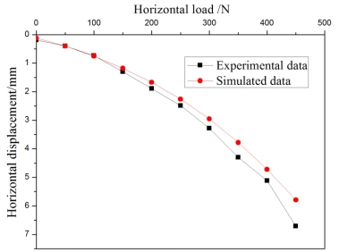 Figure 2. Comparison of test results and our finite element calculated values of the pile under various load: (a) load-displacement; (b) bending moment.