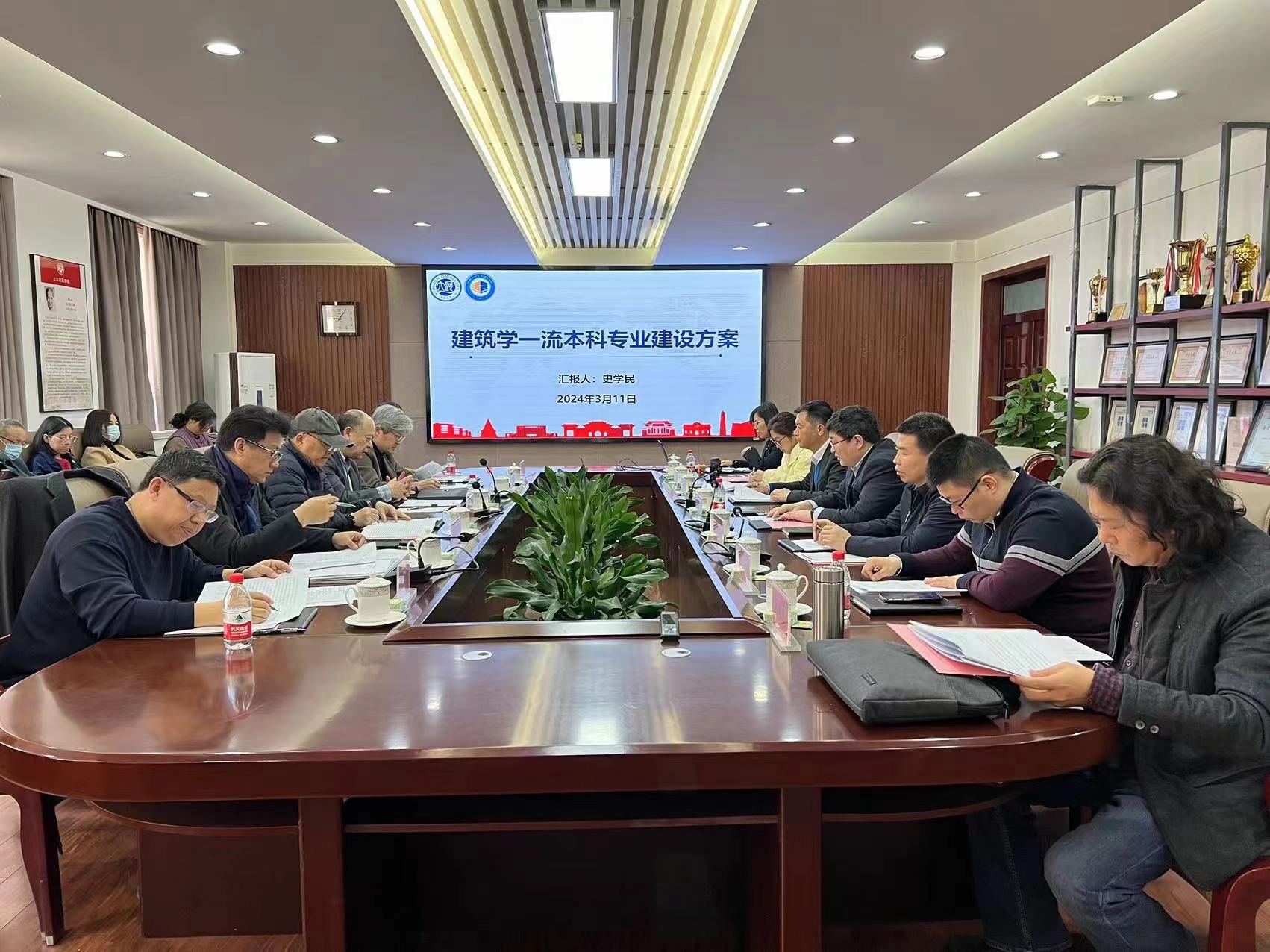 薛名辉教授与史立刚教授六位业内知名专家为专业发展建言献策。全体领导班子成员及建筑学系骨干教师参与会议。