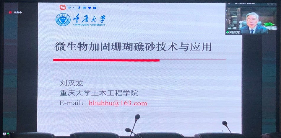 的关心与帮助表示感谢,并详细介绍了刘汉龙教授的个人基本情况。刘汉龙教授报告题目为《微生物加固珊瑚礁砂技术与应用》,从国家战略需求、关键技术、原理等方面详细阐述了微生物加固技术的研究进展及应用;重点介绍了微生物加固钙质砂静力特征、动力特征及现场试验,深入浅出的为足球比赛比分