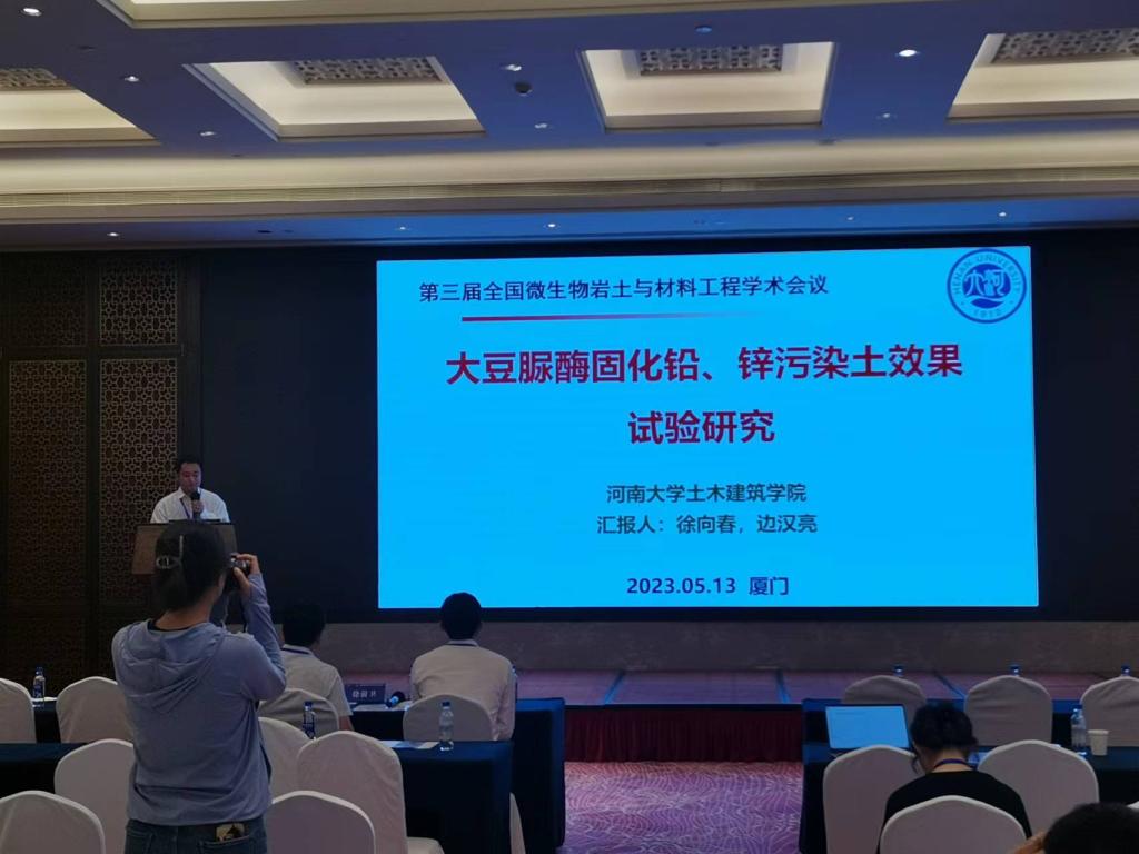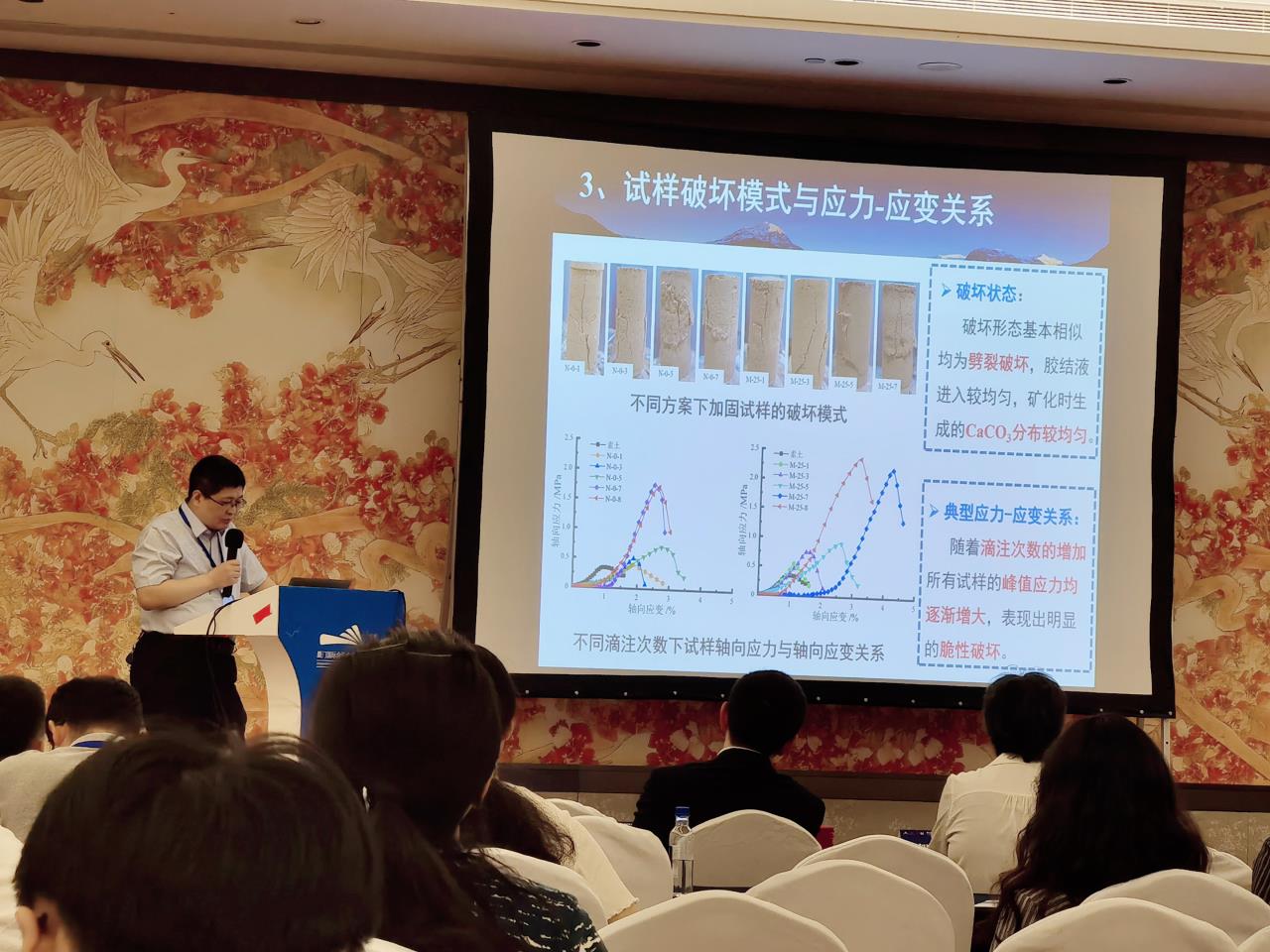 张建伟教授作为全国微生物岩土与材料工程学术委员会委员,在会上作了题为《紫外诱变产脲酶菌株加固粉土的试验研究》的特邀报告,并作为主持人进行了分会场的会议主持。岳建伟教授作了题为《基于碳化原理的遗址土性能改良的试验研究》的特邀报告。边汉亮副教授与徐向春博士作为中国岩石力学与工程学会环境岩土工程分会青年委员,分别作了题为《EICP修复重金属污染土的环境稳定性研究》及《大豆脲酶固化铅、锌污染土效果试验研究》的主题报告,展示了足球比赛比分