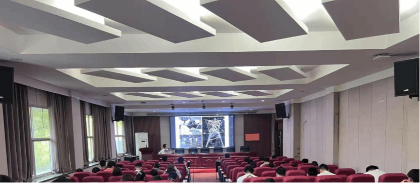 当日下午,许蓁教授在16D结构实验室二楼报告厅为本科及研究生作题为《AI时代的“智能设计与建造一体化”探索》的专题报告。他以近年主导的多个实践项目为例,回顾了研究团队构建“数字设计—机器人施工”的历程,展示了算法如何实时优化结构形态指挥机械臂完成高精度拼装、在单机器人自主建造实验中搭载AI视觉系统的机械臂怎样成功实现复杂曲面构件的自适应抓取与定位。面对智能建造发展,许教授提出“人—机器—A”三元协同机制。