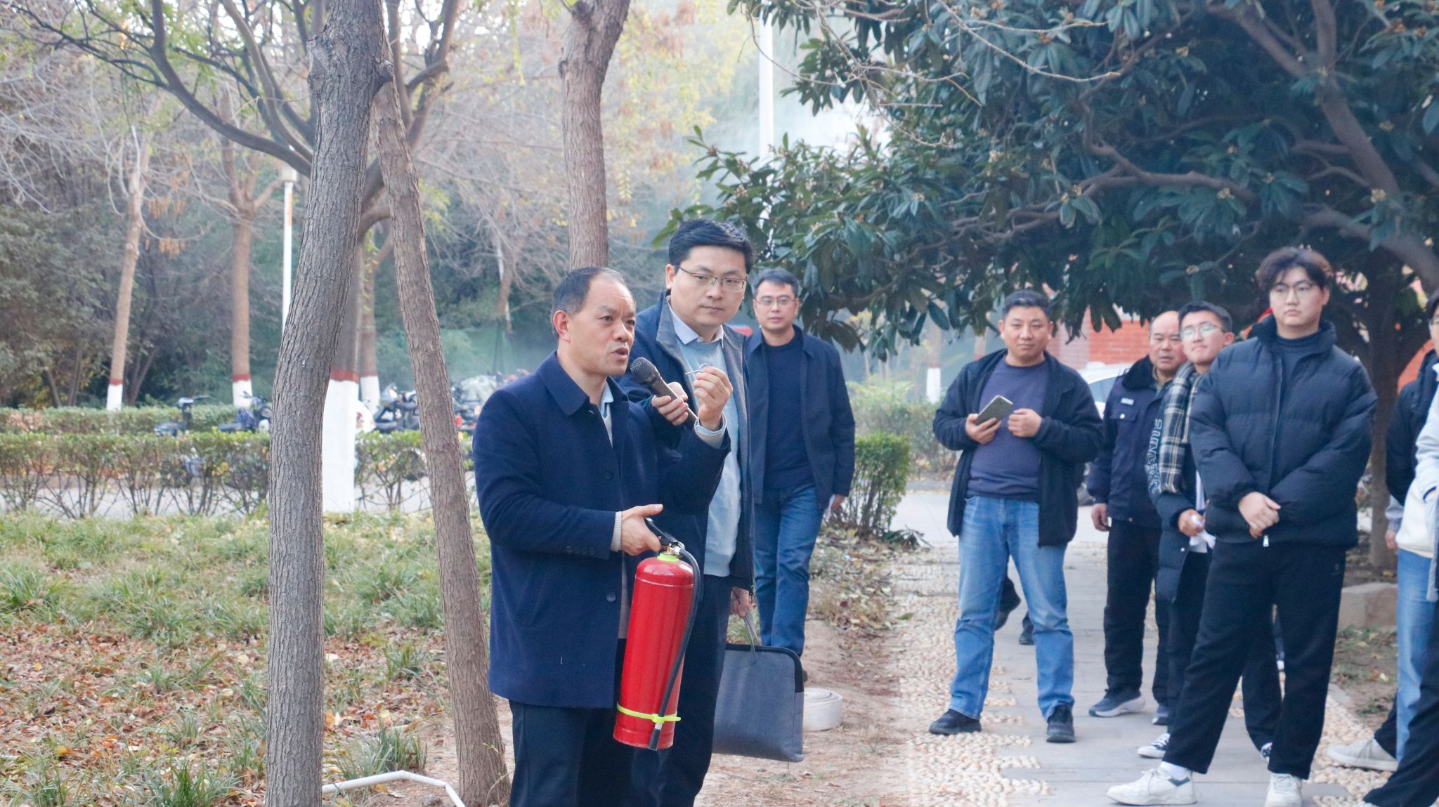 讲座伊始,张杰以近年来发生的典型校园火灾事故视频为切入点,让师生深刻认识到火灾的无情与危害。他详细介绍校园内易发生火灾的地点,认真讲解火灾预防的关键要点,以及针对火灾发生时正确报警、如何安全撤离的注意事项。在谈到火灾初期扑救时,张杰现场展示不同类型灭火器的使用方法,着重说明灭火器的适用范围和操作步骤。随后,他带领师生熟悉所在场所的疏散通道,用湿毛巾捂住口鼻、低姿前行,保持适当间隔,避免拥挤踩踏,现场演示疏散逃生技巧。