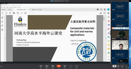 “第二届海外云课堂”《Composite materials for Civil and marine applications》(土建及船用复合材料)于2021年1月11日正式开讲。
